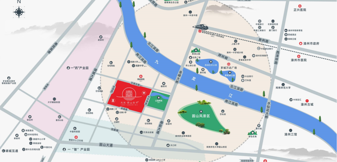 交發·圓山壹號擇址漳州中心城區靖圓核芯,毗鄰“一智一藥”百億產城融合啟動區,坐享未來發展紅利。依托南江濱路、圓山大道、廍前大道、靖城大道四條主干道形成兩橫兩縱一體化交通網,快速通達全城。毗鄰漳武高速、廈漳城軌R1線西湖站(規劃中),輻射廈漳兩地,出行之間盡享便捷。