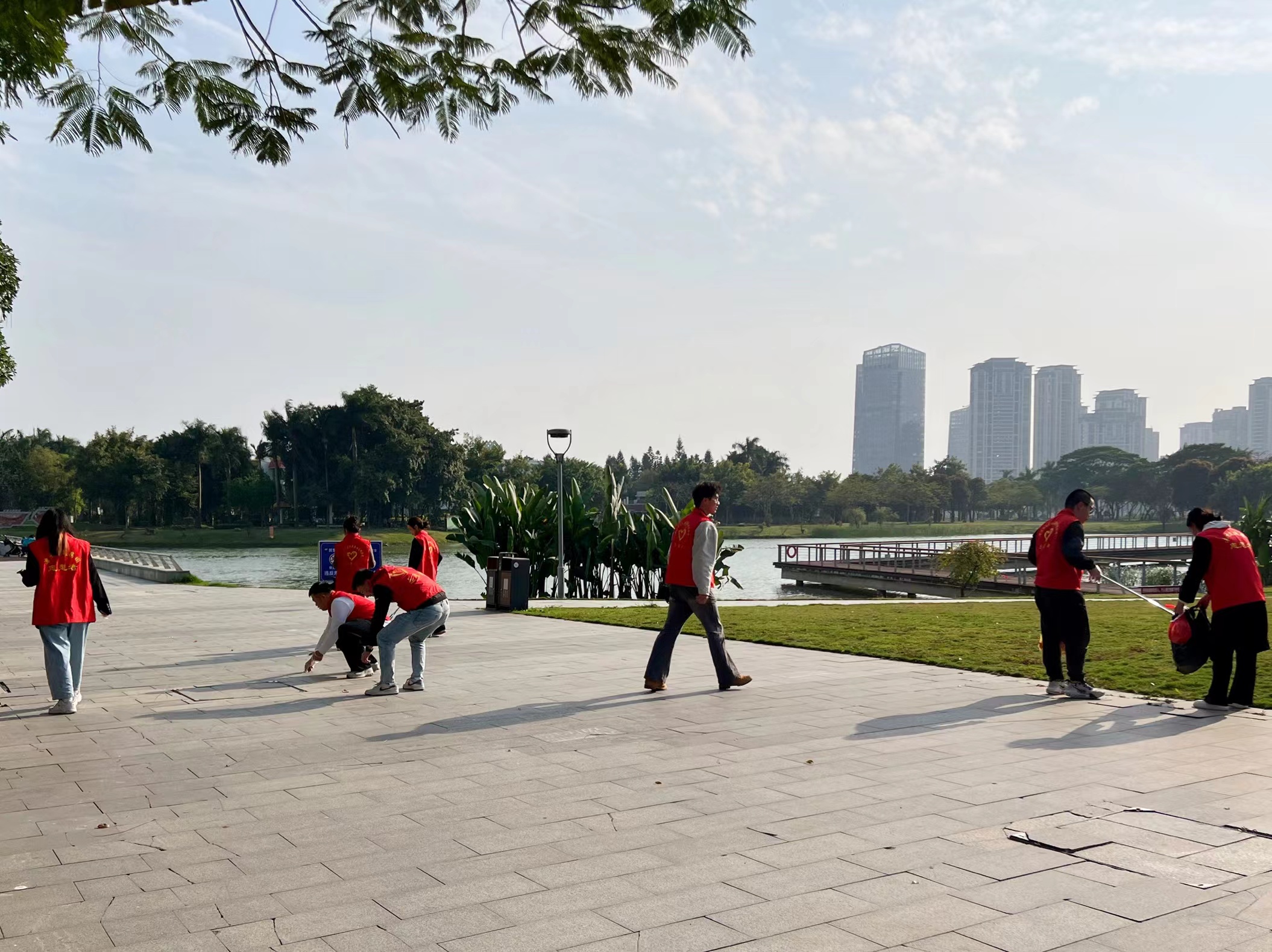 第二組團員青年深入公園內(nèi)部,撿拾路邊、綠化帶、草叢中等場地的垃圾,把搜集到的各類垃圾嚴格分類裝袋;對占綠、占盲、倒伏的非機動車輛進行搬扶整理;對發(fā)現(xiàn)的共享單車非法小廣告進行清理,為共創(chuàng)干凈、整潔、舒適的生活環(huán)境獻出自己的一份力,增強大家環(huán)境保護意識的同時又傳遞了勞動光榮的精神。