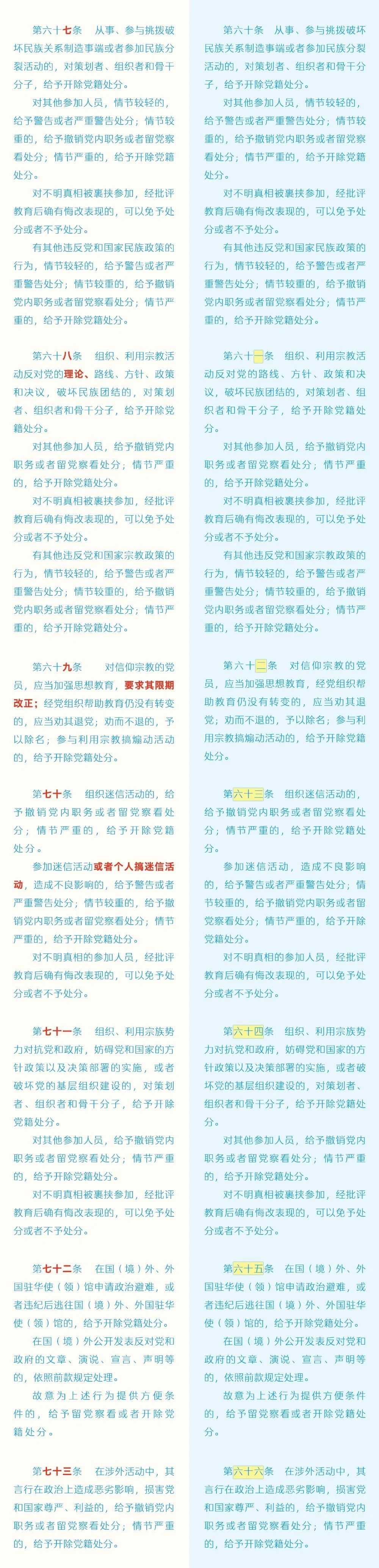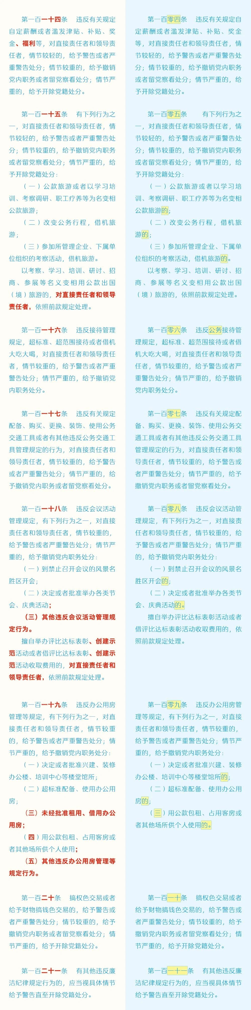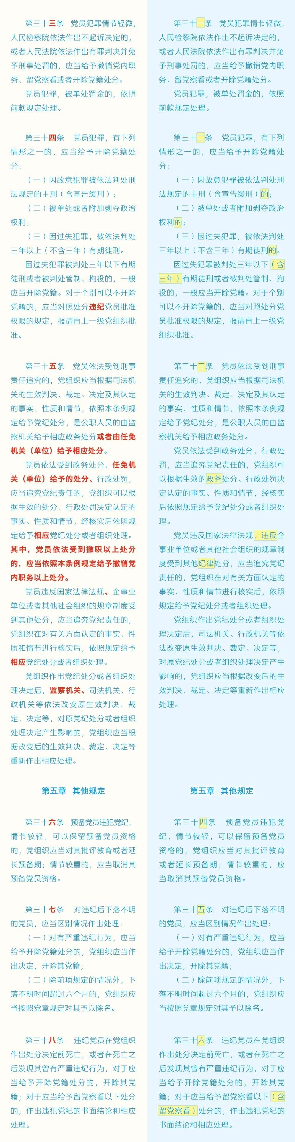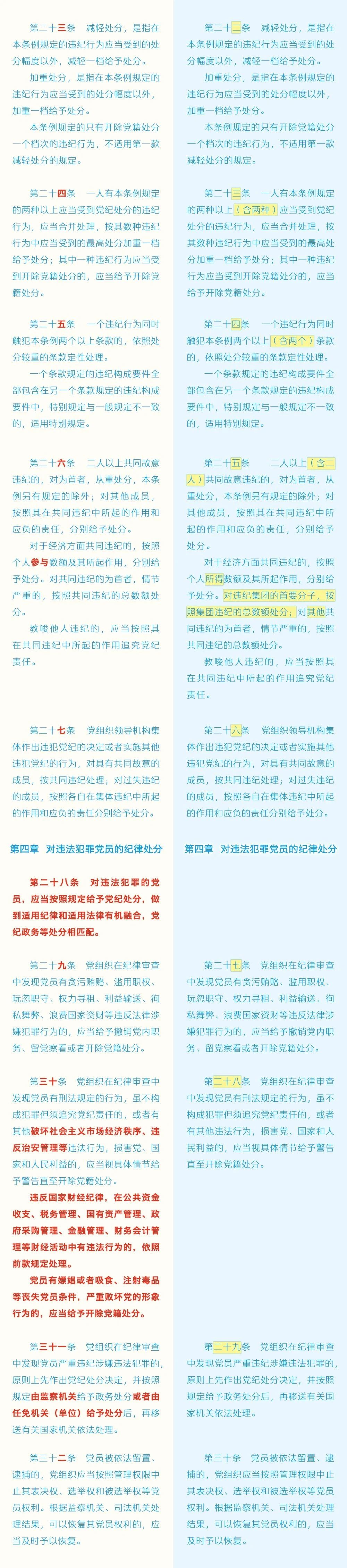 黨紀學習教育 | 《中國共產黨紀律處分條例》修訂條文對照表