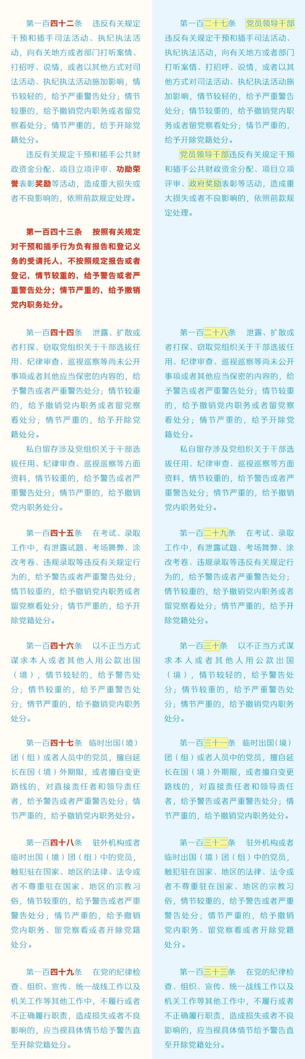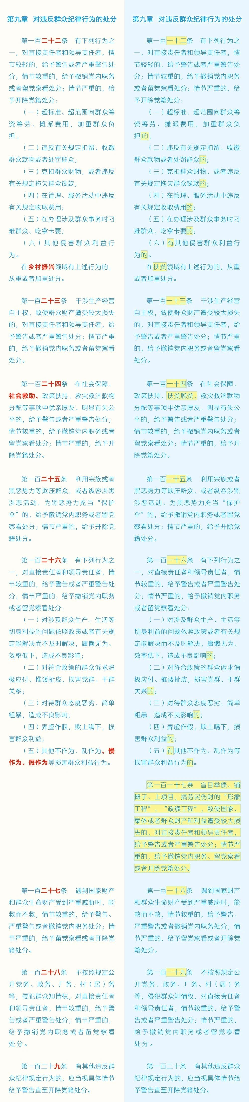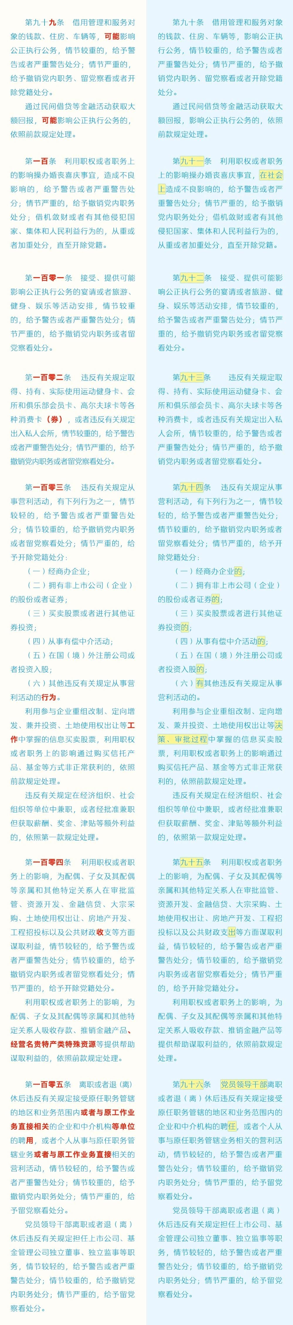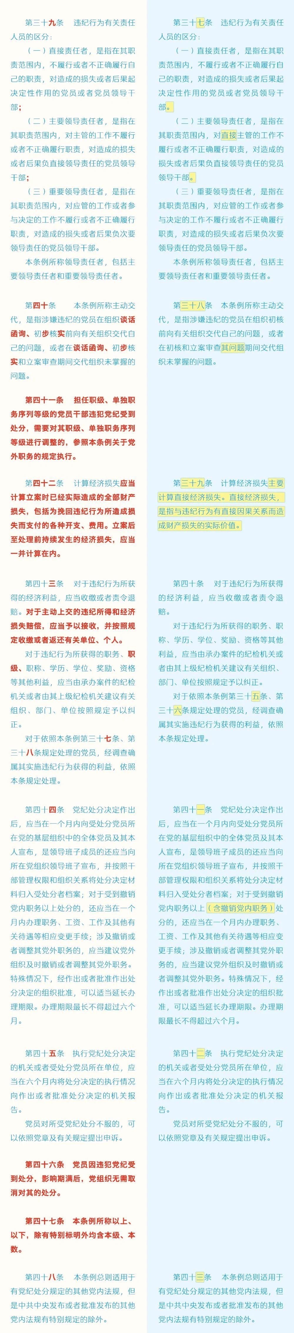 黨紀學習教育 | 《中國共產黨紀律處分條例》修訂條文對照表