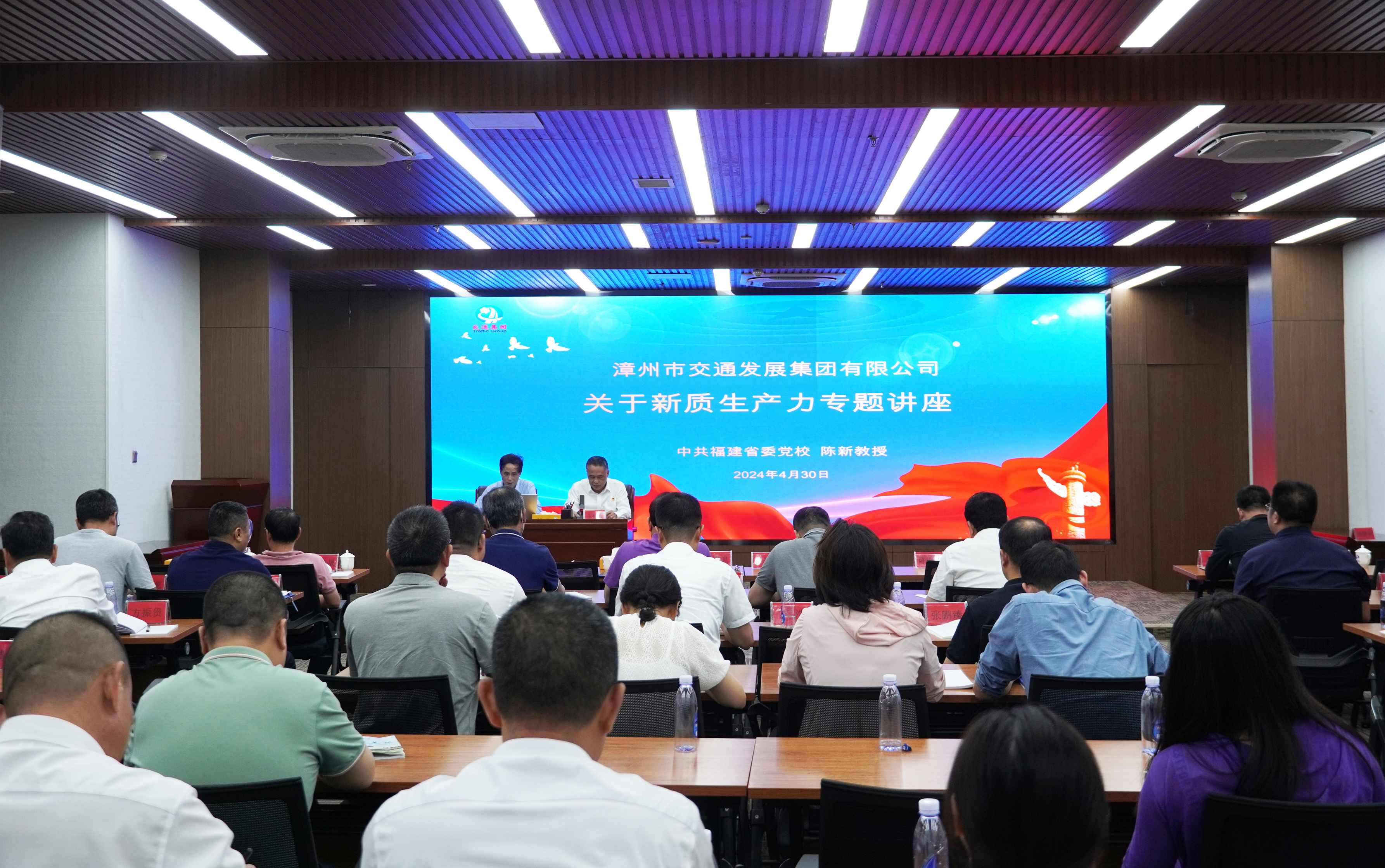 陳新教授以“新質生產力的科學內涵及新質生產力賦能高質量發展”為主題,從“新質生產力的科學內涵和與傳統生產力的三大區別”“推動新質生產力賦能高質量發展”“發展新質生產力的思考”等幾大方面進行了深入淺出的全面闡述,既有理論基礎,又有實際工作剖析,給大家帶來了一堂精彩的輔導講座,讓與會人員深刻領悟了習近平總書記關于新質生產力的重要論述和實踐要求,把握了核心要義、明確了工作重點,同時也進一步為集團廣大干部職工積極探索符合交通集團發展實際的方法路徑,做到向“新”出發,以“質”謀“新”,不斷提高推動新質生產力發展的能力本領,推動集團高質量發展提供了理論基礎。
